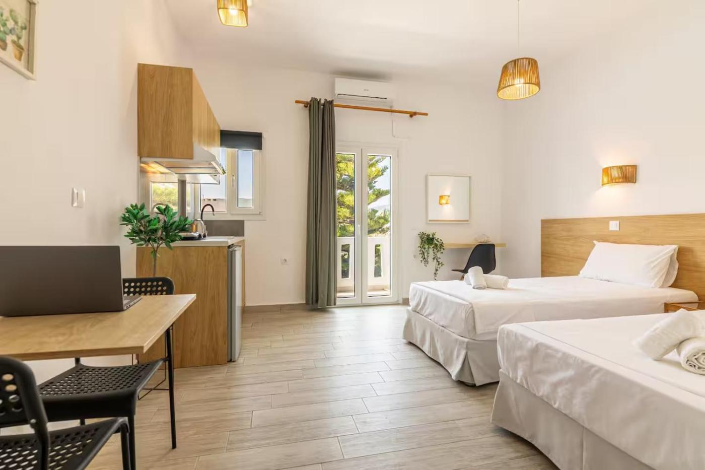 Double or Twin Room with Partial Sea View. This twindouble rooms standout feature is the pool with a view. In the well-equipped kitchen, guests will find a stovetop, a refrigerator, kitchenware and an electric kettle. The twindouble room offers air conditioning, a private entrance, a balcony with sea views as well as a private bathroom featuring a shower. The unit offers 2 beds. ;