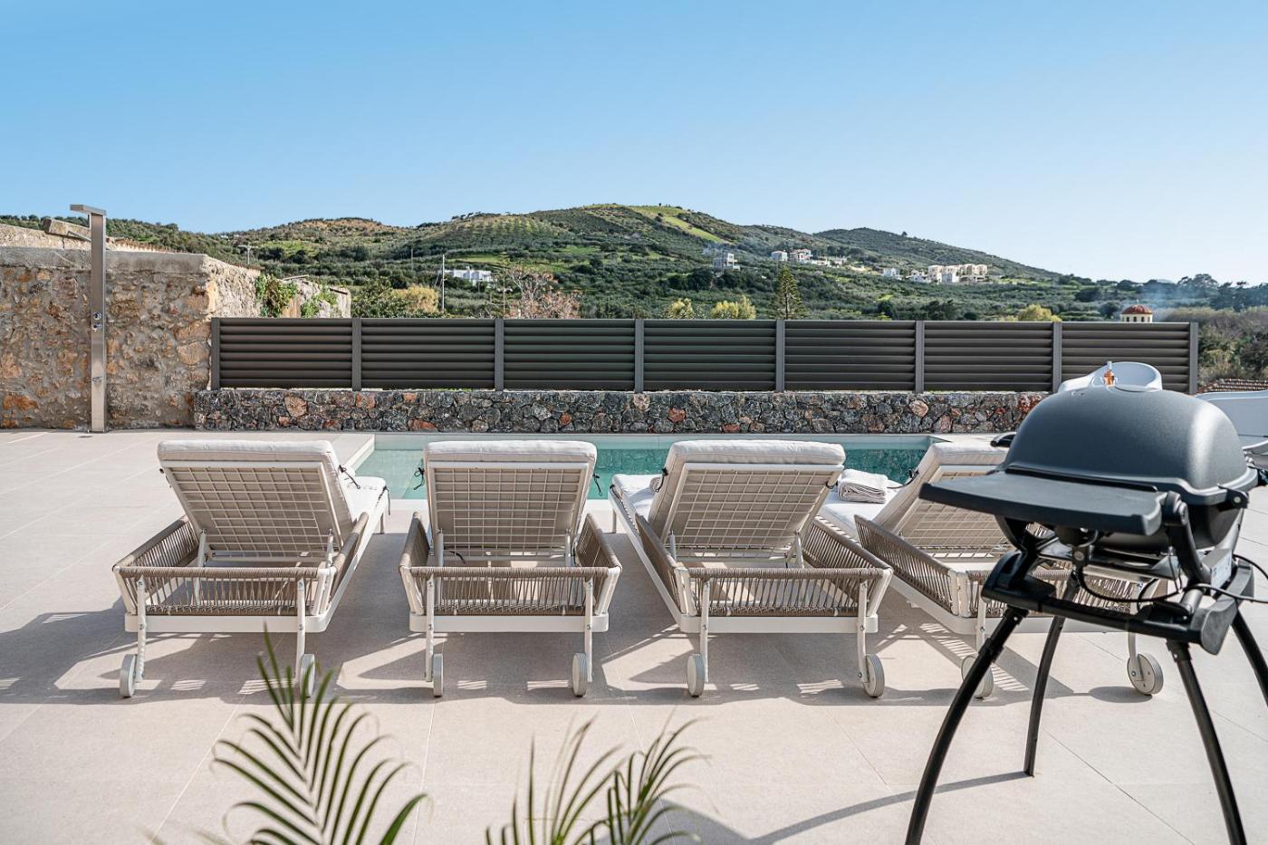 Two-Bedroom Villa. This villas standout feature is the pool with a view. Boasting a private entrance, this air-conditioned villa includes 1 living room, 2 separate bedrooms and 1 bathroom with a walk-in shower and a hairdryer. Guests will find a dishwasher, kitchenware, an oven and a tea and coffee maker in the kitchen. The villa also features a barbecue. Featuring a terrace with sea views, this villa also offers a washing machine and a flat-screen TV with streaming services. The unit has 4 beds.