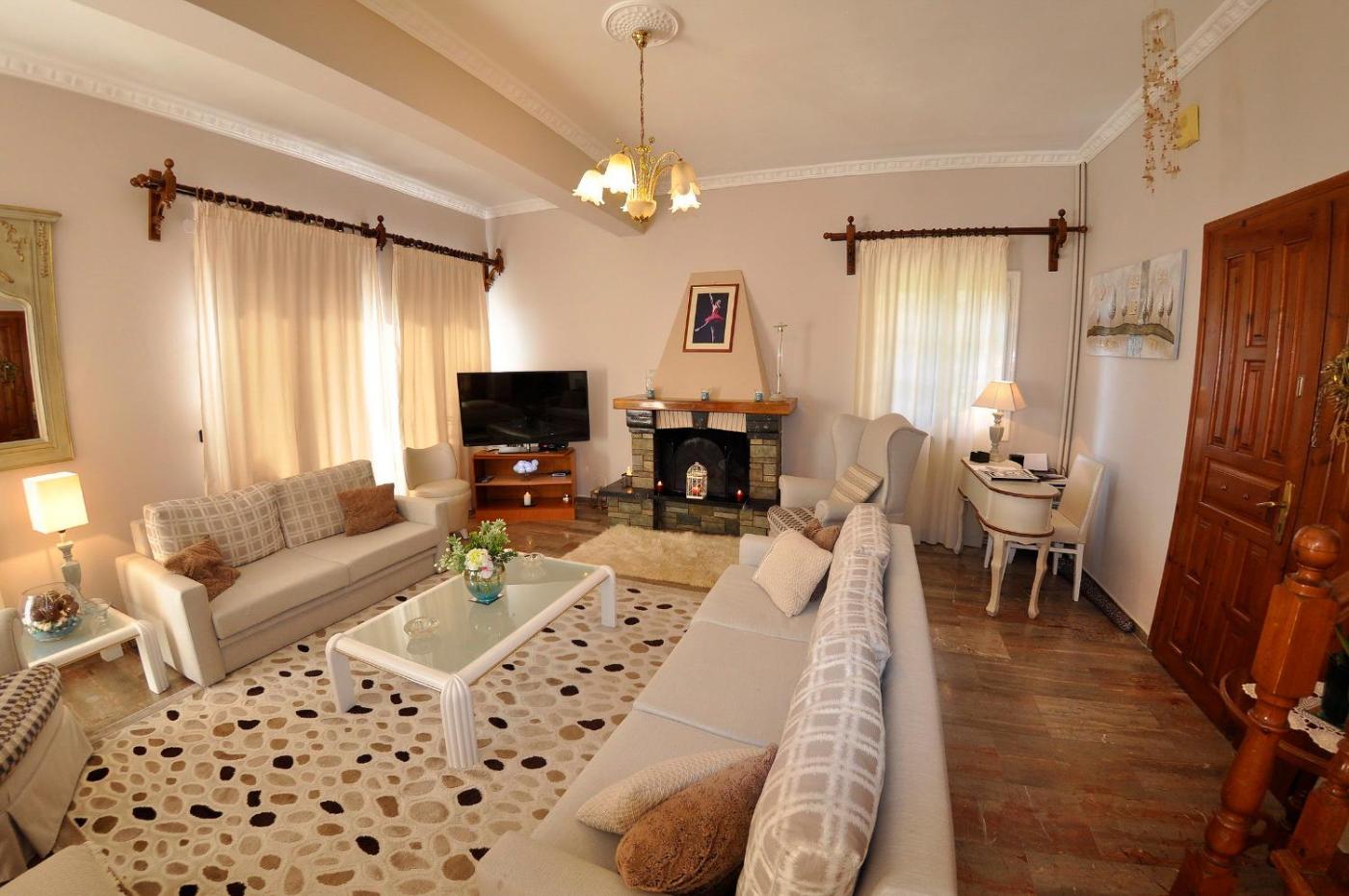 Three-Bedroom Villa with Sea View. Covering an area of 150 m2, this air-conditioned villa enjoys views over the Ionian Sea from its balconies. It consists of 3 bedrooms, a living room with fireplace and a kitchen and 3 bathrooms. It offers: -a dining area -a fridge, stove and microwave -a washing machine -a DVD player and a flat-screen TV with satellite channels -a WC on the ground floor and 2 bathrooms with hairdryer and free toiletries on the second floor -free WiFi. A basket with fruit, local wine, handmade jam and olive oil is offered to guests upon arrival. ;