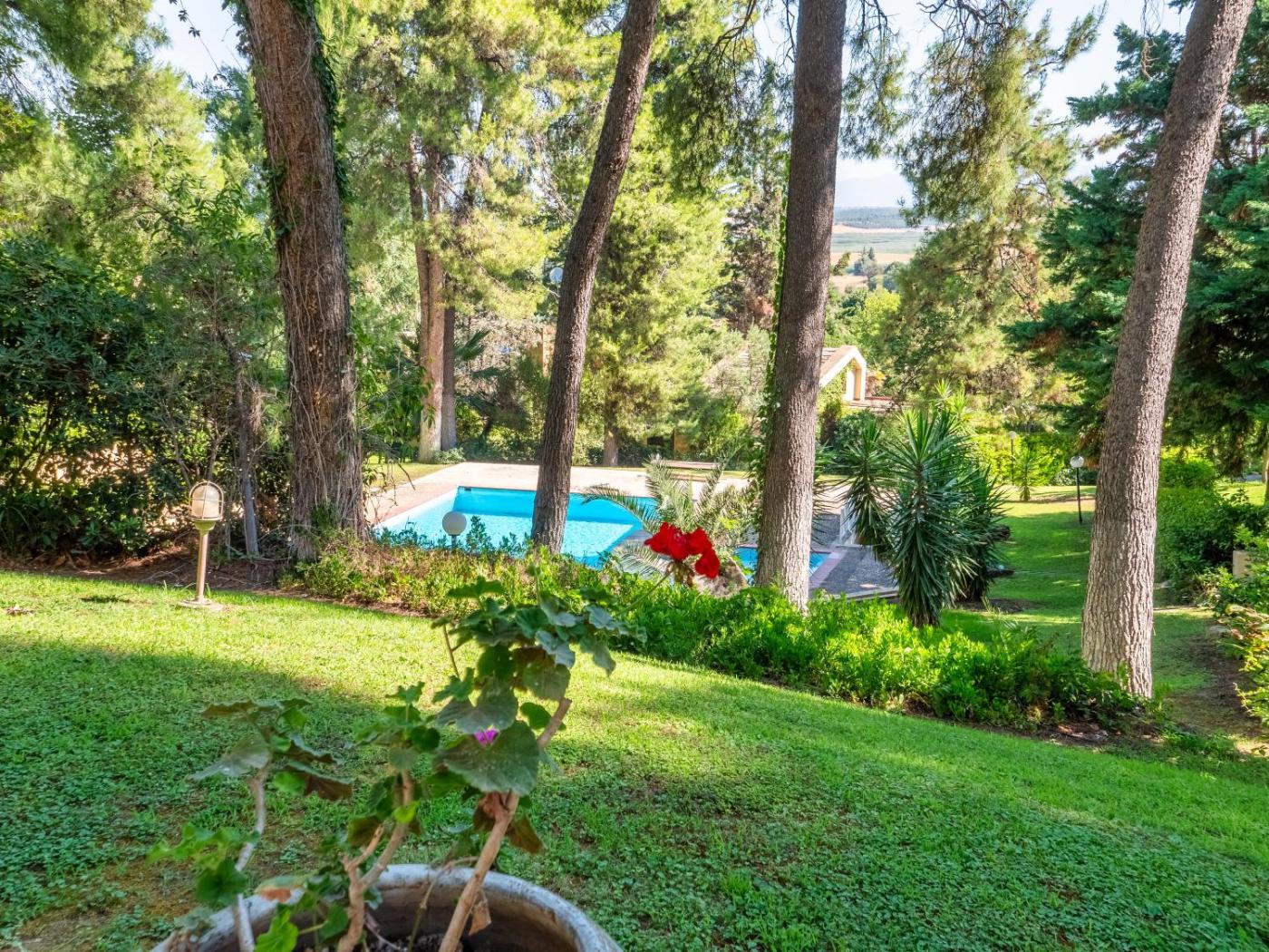 Guests can enjoy the outdoor swimming pool and garden at the villa.